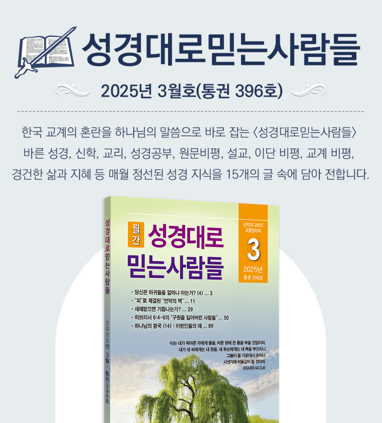 | 월간 성경대로믿는사람들 2025년 1월호(통권 394호) 출간 안내 (0) | 2025.01.03 |