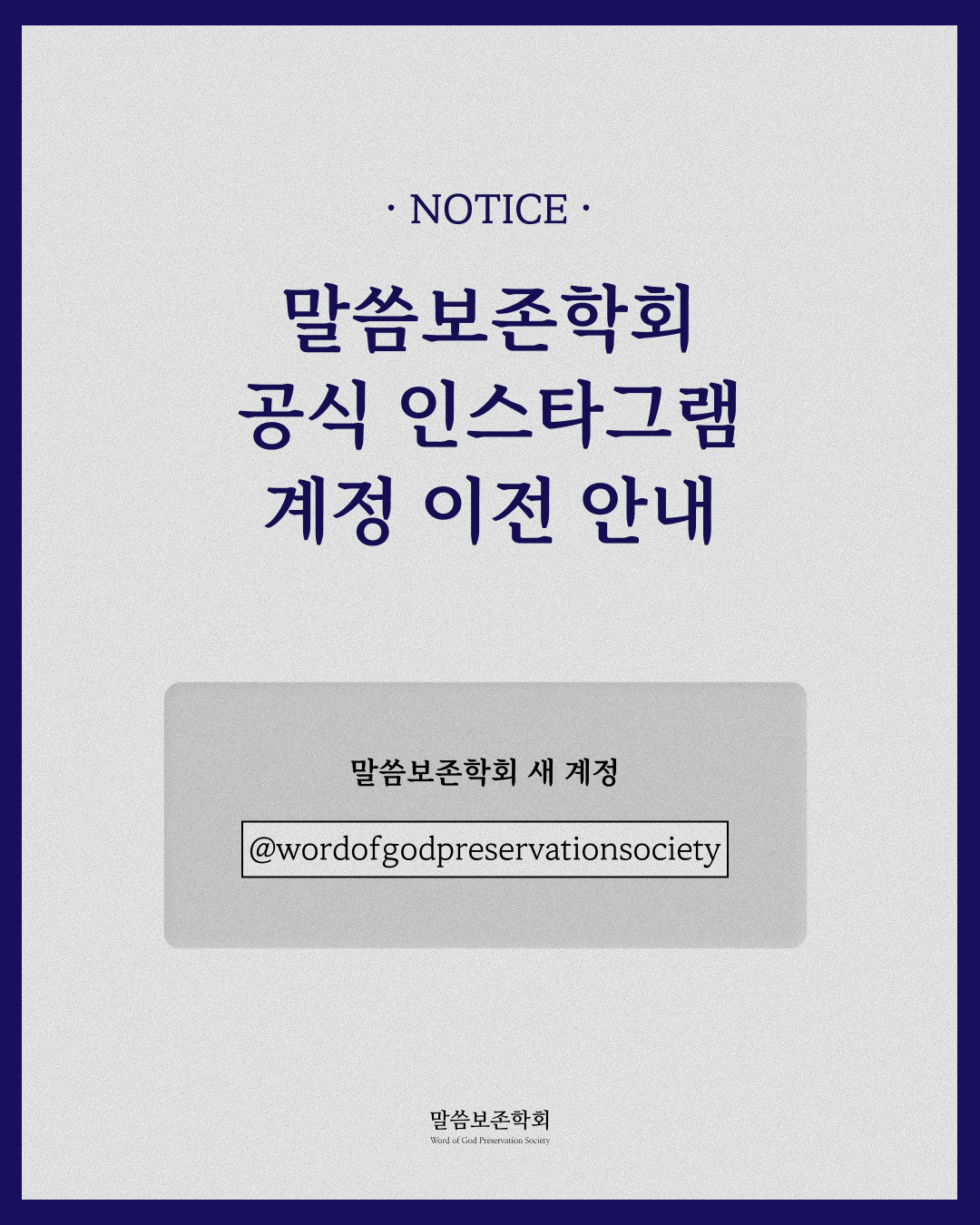 아울러 말씀보존학회 인스타그램도 새롭게 바뀌었습니다.